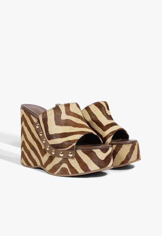 Harriet Mid Mule Animal Print Leather Sandal