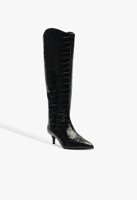 For fashion enthusiasts who love a bolder edge, the Maryana also comes in animal print and crocodile embossed leather boots. These eye-catching textures add instant personality to any outfit, making them ideal for those who want their footwear to take center stage.