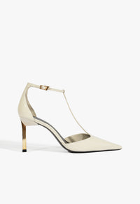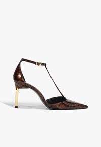 The Allure T pumps are your secret weapon for an unapologetic entrance. Razor-sharp details, a fierce gold stiletto, and a daring T-strap bring all the drama. Whether you're stepping into a rooftop party or a high-stakes meeting, these heels do the talking. The glossy finish isn't just for looks—it's a statement. Stride with purpose and leave everyone speechless.