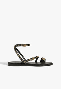 Meet your go-to for turning the volume up on any outfit—Annete is bold, sleek, and a tad bit unruly. A mix of delicate straps and rugged metallic accents strikes the perfect contrast. The flat sole keeps things seamless, but the attitude is all in the details: no rules, no limits—just an effortless edge.