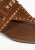 Edge meets ease in the Aria sandal, where bold hardware and standout structure come standard. Every detail, from its thick strap to the sharp square toe, delivers an edge. Gold-tone studs and statement hardware give it undeniable energy, and the textured finish adds a touch of grit. Wear a pair of Arias to downtown brunch or your next off-duty coffee run.