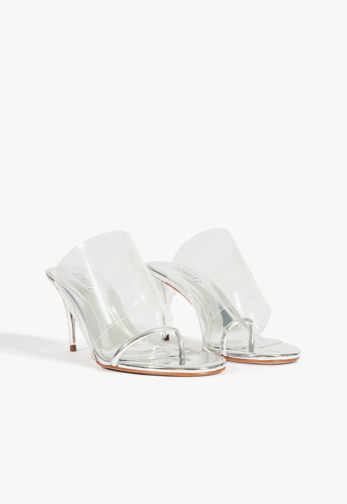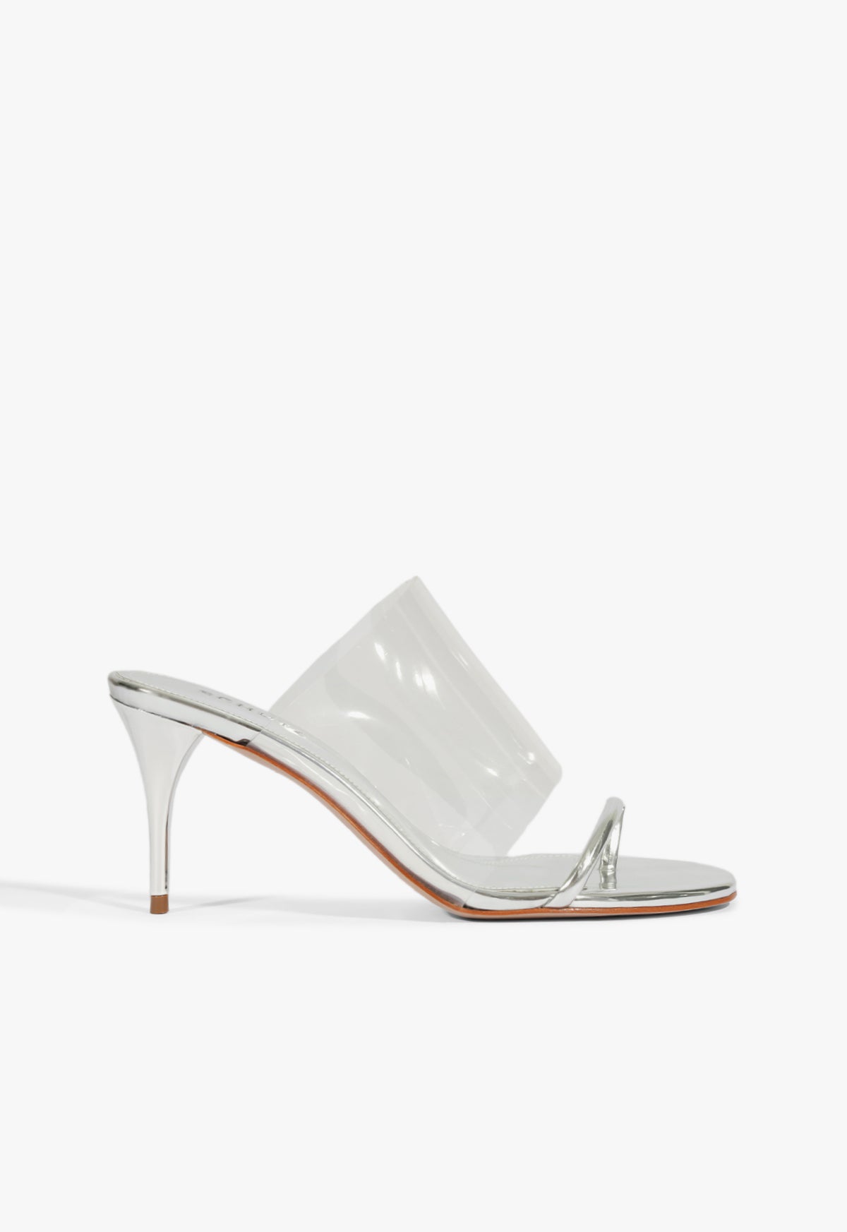 These mules are anything but uniform. One plays it sleek with a toe ring entry, the other breaks ranks with a sculpted side cutout, anchored by clear straps and a glossy stiletto heel. The Astra brings a futuristic edge to your lineup, striking the balance between barely there and impossible to ignore.