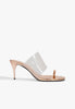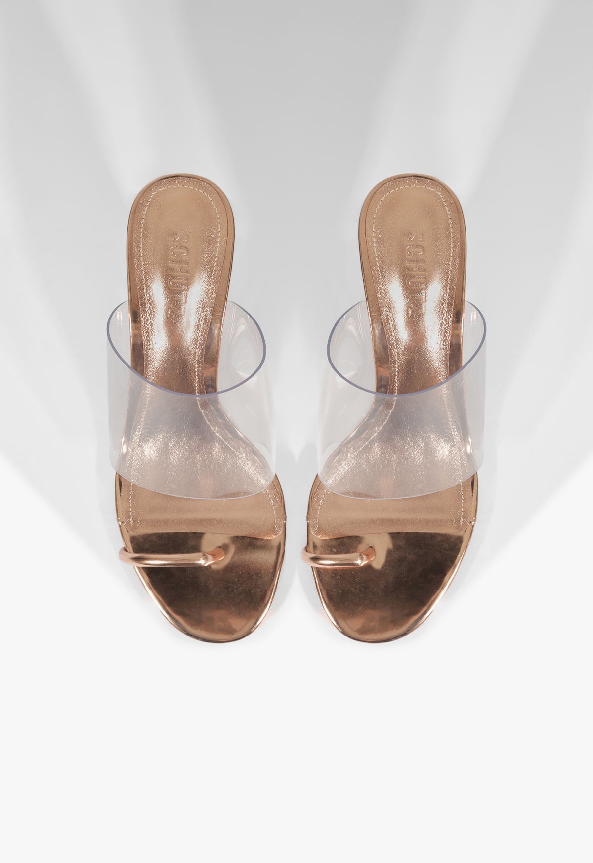 These mules are anything but uniform. One plays it sleek with a toe ring entry, the other breaks ranks with a sculpted side cutout, anchored by clear straps and a glossy stiletto heel. The Astra brings a futuristic edge to your lineup, striking the balance between barely there and impossible to ignore.