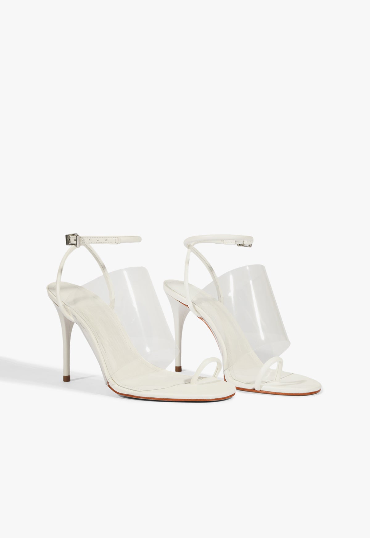 Built to disrupt the dress code, Astra is your sleekest excuse to go full throttle. The transparent cuff floats over the foot, giving modern armor vibes with zero bulk—a clean toe strap and sky-high heel seal the deal. Whether you're walking into a gallery or owning an after-party, these sandals speak fluent icons.