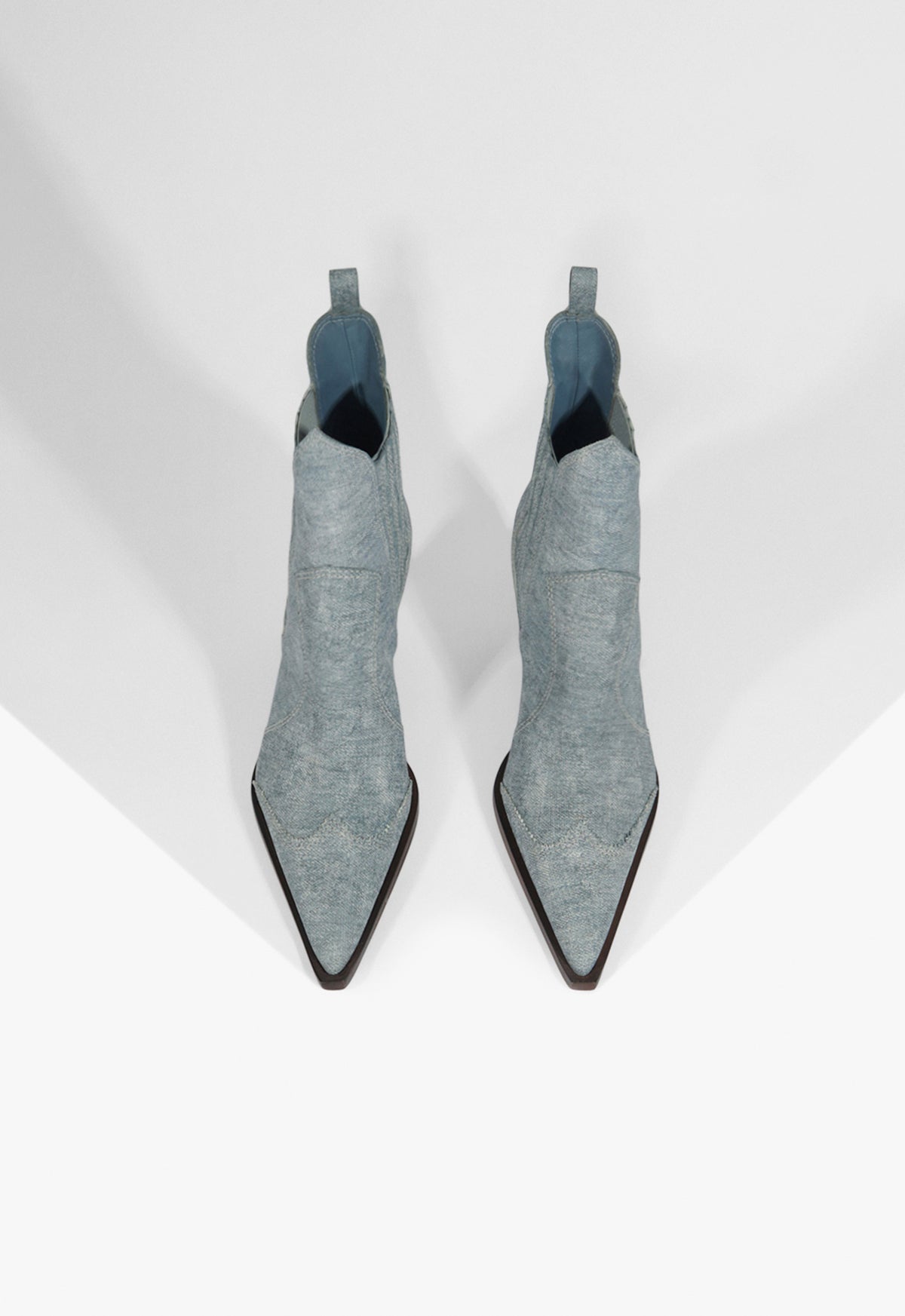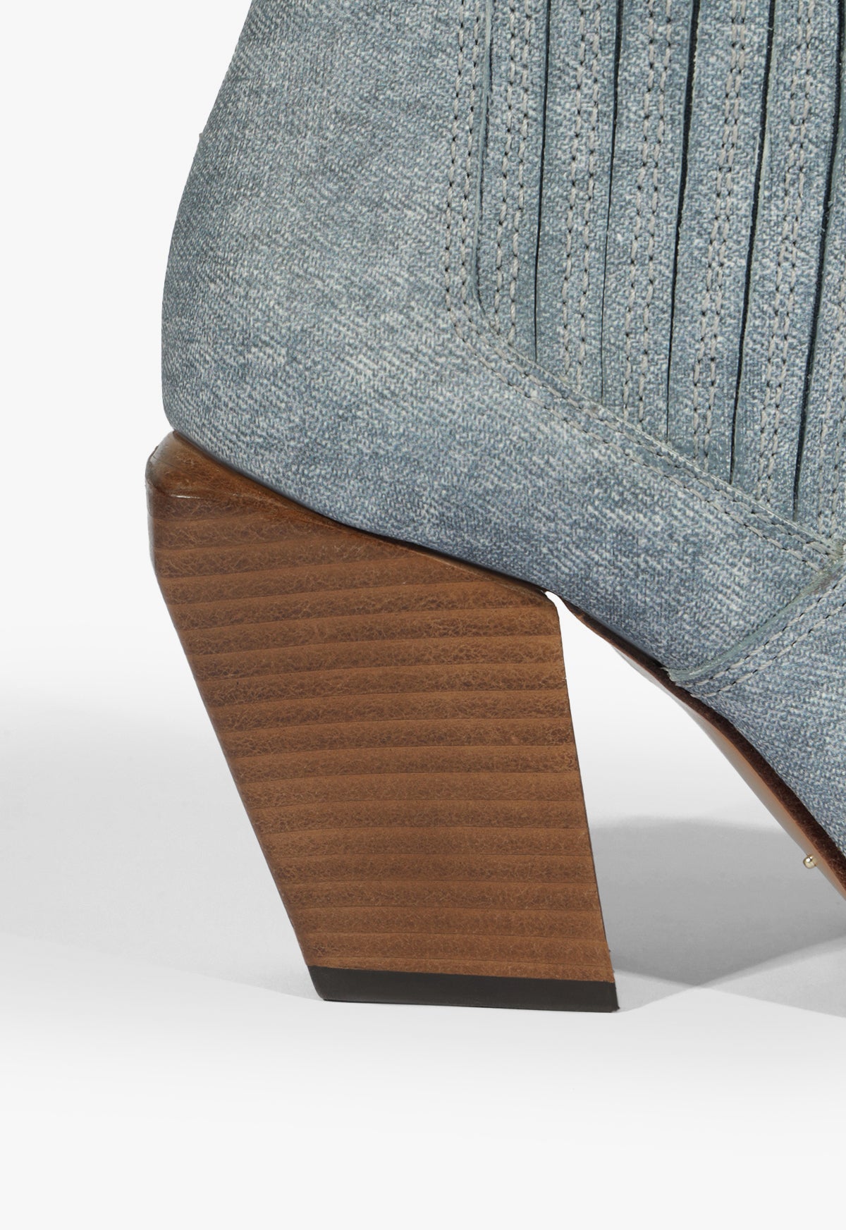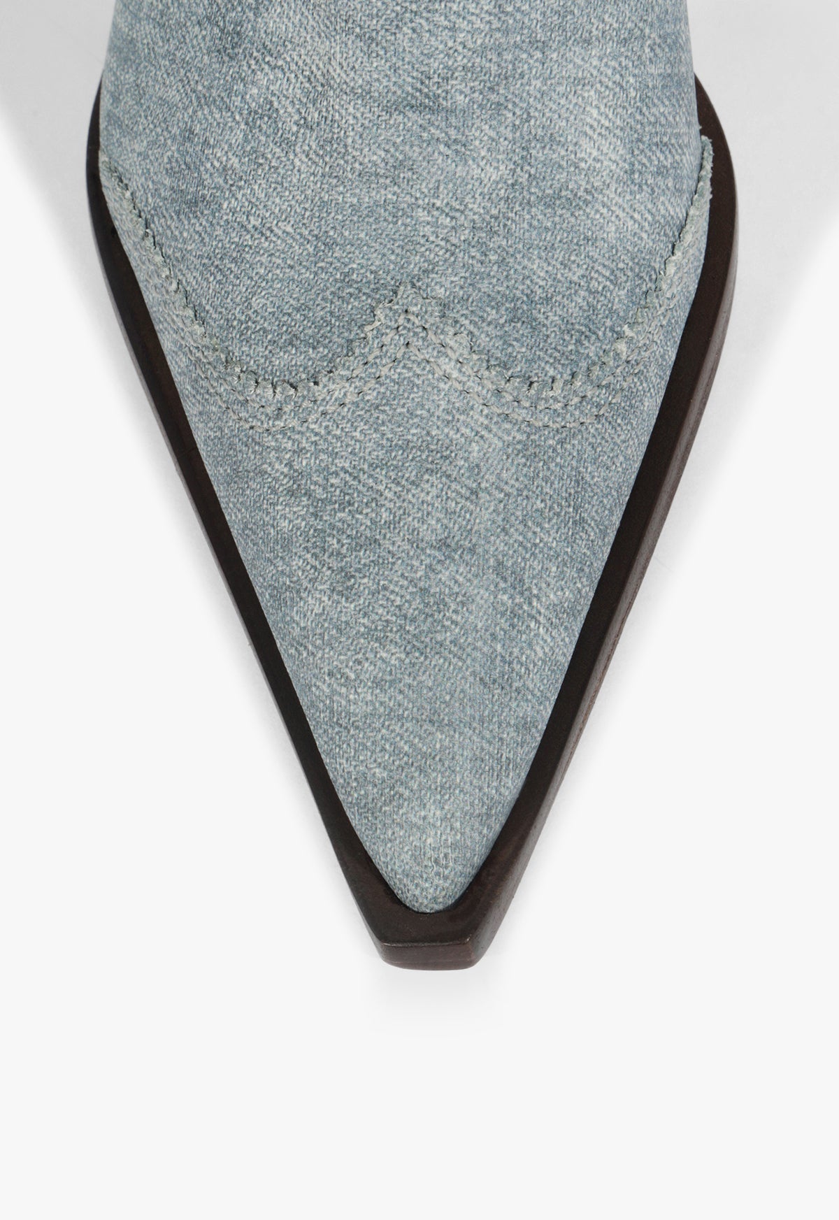 Western gets a remix with the Dolly bootie—done up in blue leather with a crackled, worn-in vibe. The pointed toe, bold heel, and notched shaft make it feel directional rather than dusty. Think: yeehaw, but make it downtown—style with cargo skirts, oversized blazers, or your go-to mini skirt for instant edge. Overall, Dolly’s the kind of boot that sparks conversation.