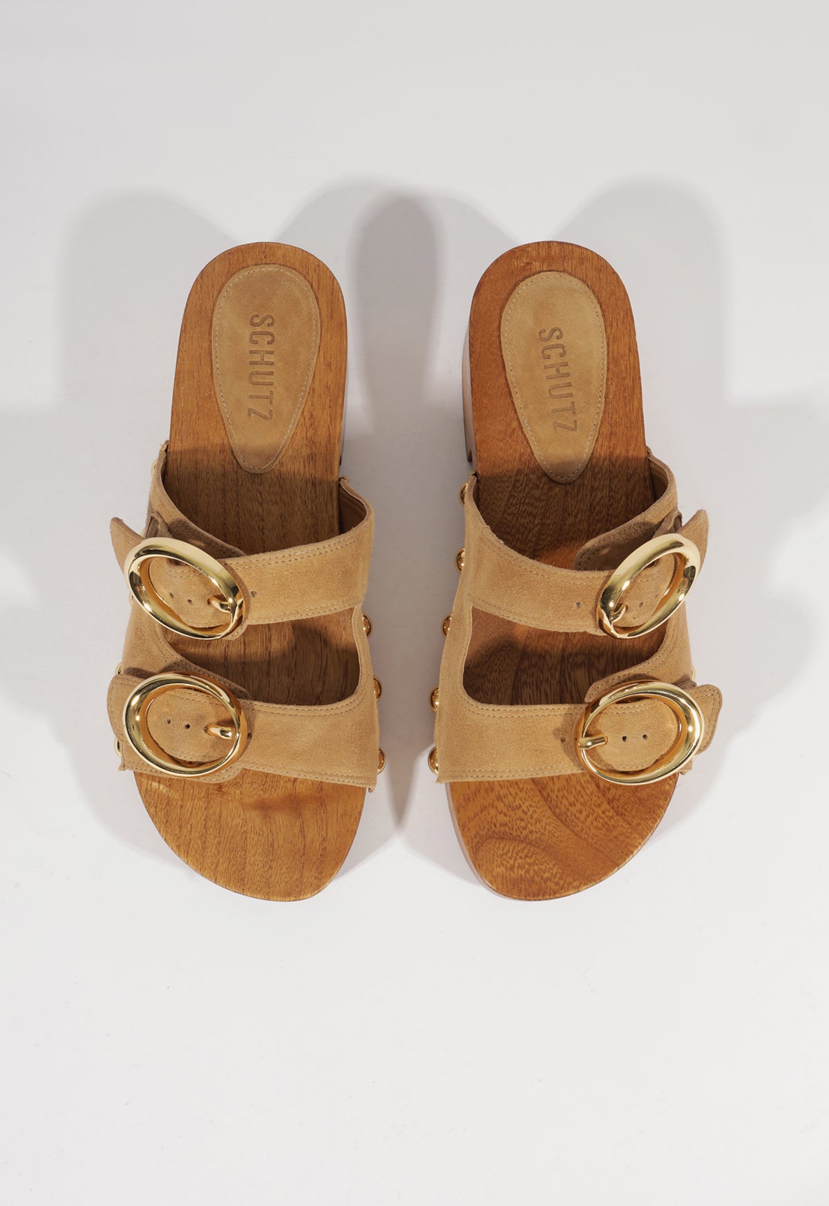 Juno is the ultimate sandal for turning casual Summer plans into cool moments. Chunky buckles and studded details serve a serious attitude with every step. The wooden low-block heel adds a crafted feel while keeping it light and easy. These Junos are for everything, from music festivals to casual Sunday hangs with the girls.