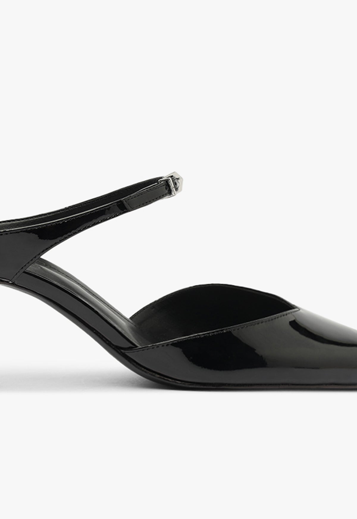 The Laurie takes the mule silhouette to the next level with sharp angles and a sculpted mid-heel. A pointed toe and asymmetric strap add a fresh, dynamic edge, while the patent finish keeps things sleek. The mid-heel height is for those who want presence without the extra height. Designed to transition seamlessly, these are the go-to for making every moment count.