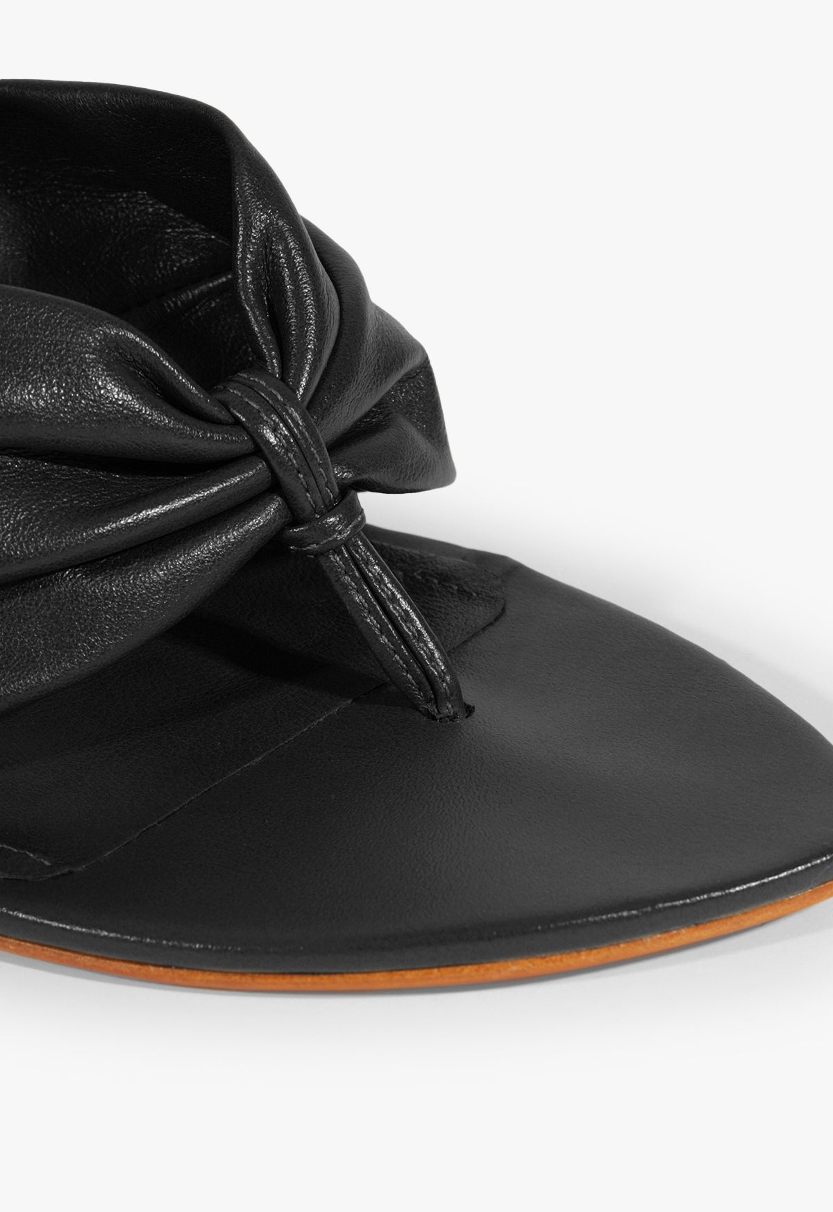 This fresh take on the Lori mule features a mid-heel for effortless wear. The knotted leather strap brings an undone attitude to this slip-on silhouette. A leafed toe sharpens the look, keeping it modern and refined. Designed for versatility, it pairs with everything from tailored trousers to denim. These are the sandals to reach for when you want something easy yet impactful for your day's outfit.