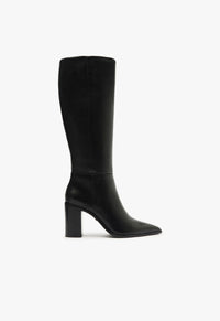 Our Mikki Ups are perfect for fall and winter, offering style and warmth. The boot features a block heel, which provides stability and comfort while adding height, and a pointed toe, incorporating a sharp and elegant touch to the overall design. These knee-high boots could be worn with dresses, skirts, or tucked-in skinny jeans, making them a great addition to any wardrobe.