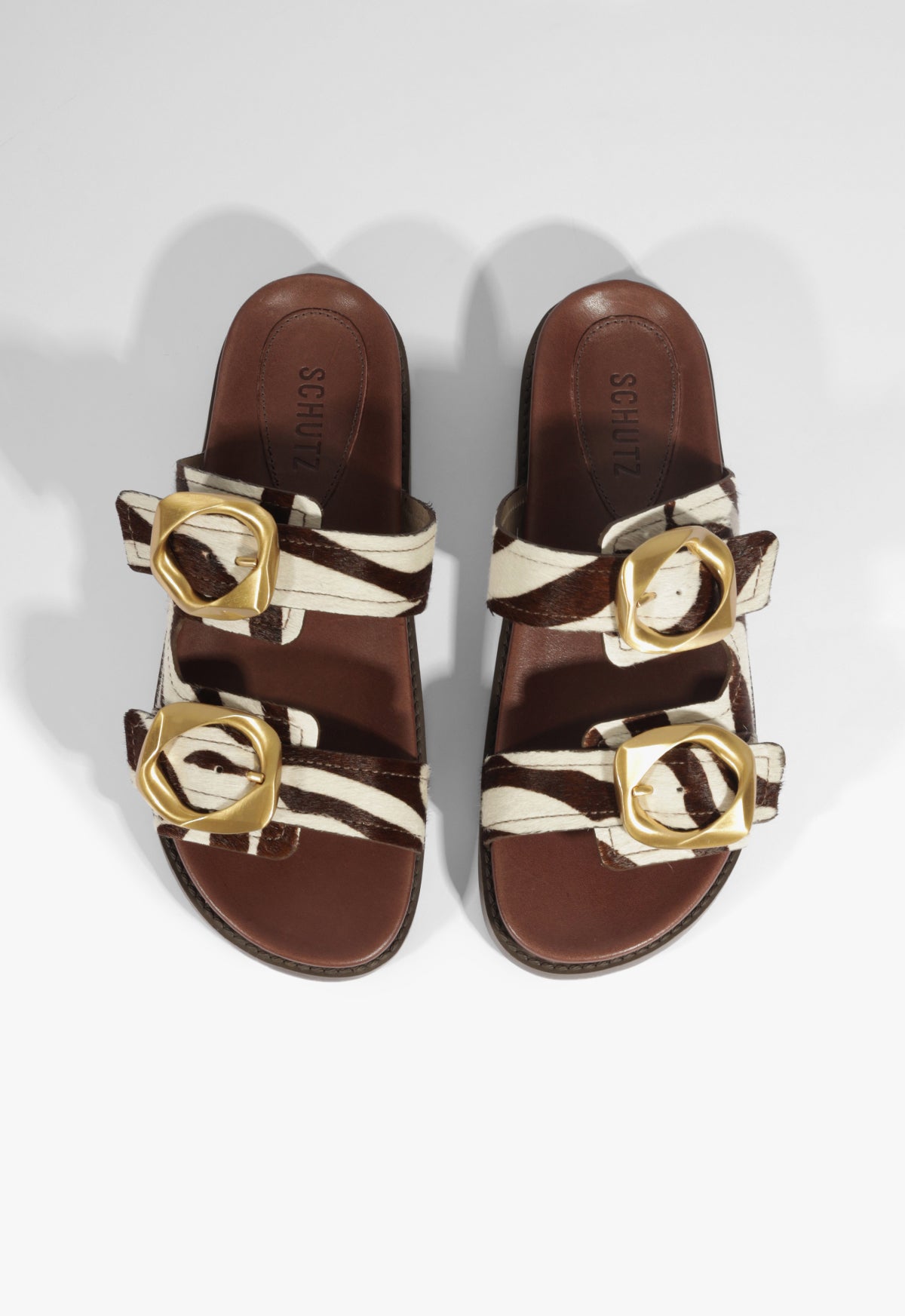 Olga brings the wild to your walk. With a fusion of sporty design and attitude, this sandal levels up your daily with chunky gold buckle and statement animal print. Slip on, stand out, repeat. Style it with cargo pants or a sleek midi—she handles both. Cool, unapologetic, and built to flex.