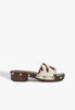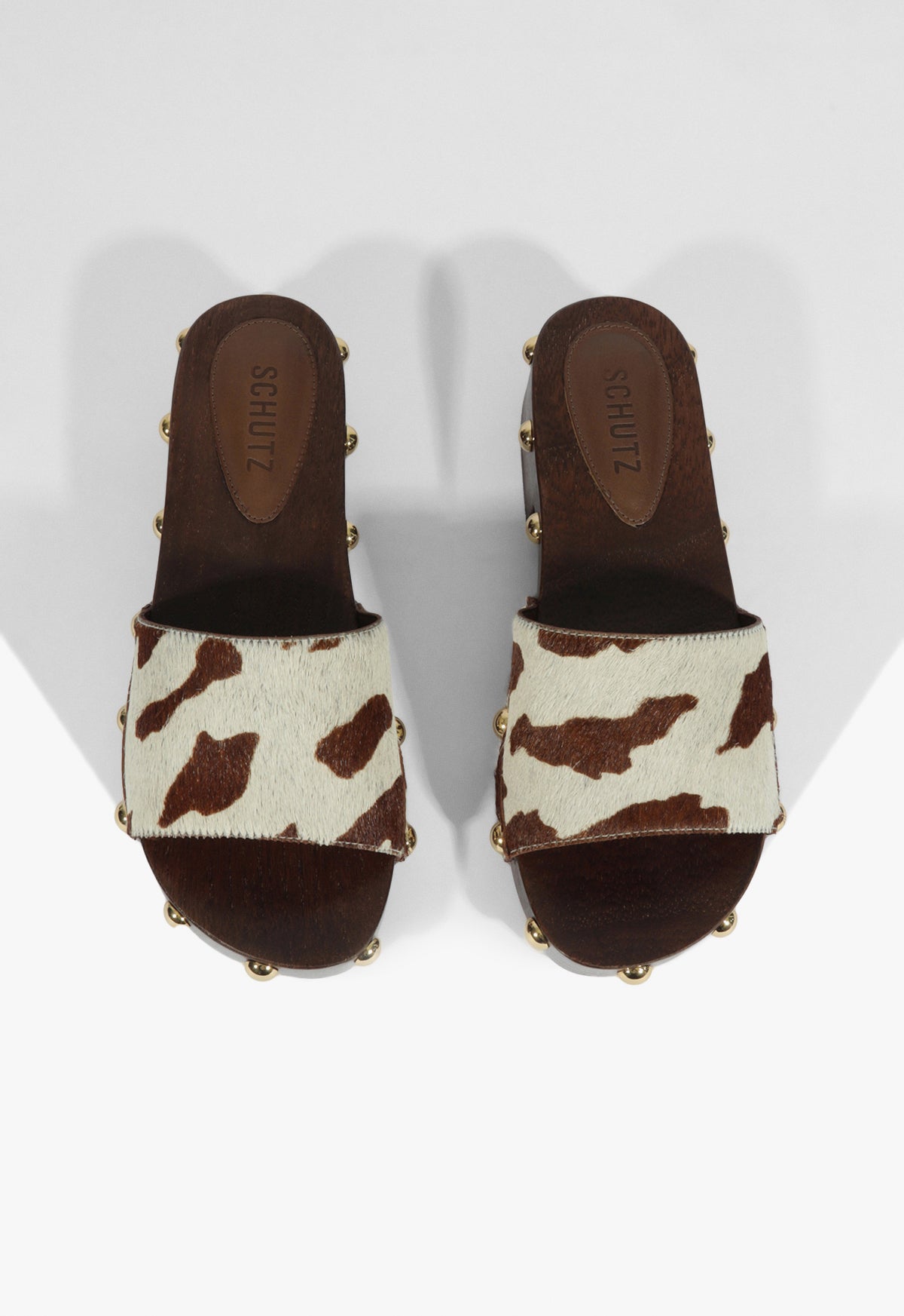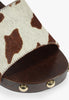 Shayla takes the natural texture of pony hair and turns it into something modern. The contrast print pops against a chunky studded sole, making this sandal feel part cool, part craft. The wood-inspired footbed adds a touch of earthy structure. Slip it on with oversized shirts or minimalist basics. It’s the kind of unexpected detail that pulls a whole look together.