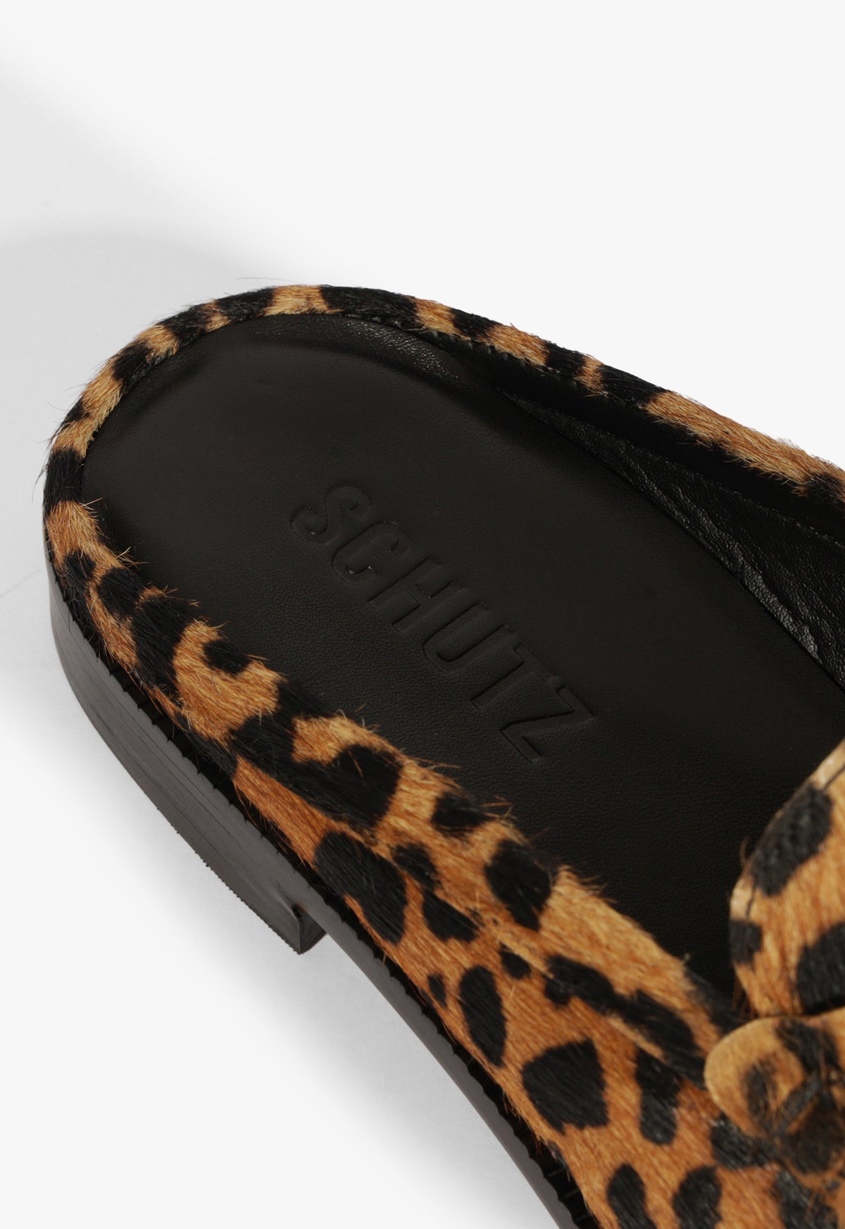 The Tyche flat reimagines a classic loafer in bold leopard-print calf hair, featuring a slip-on, backless silhouette. The round-toe shape keeps it feeling elevated while remaining easygoing. Its soft texture and grounded sole make it the ideal pick for days when you want to stand out without sacrificing ease. Think slipper energy, but styled to turn heads. Just add denim or wide-leg trousers and let the shoes lead.